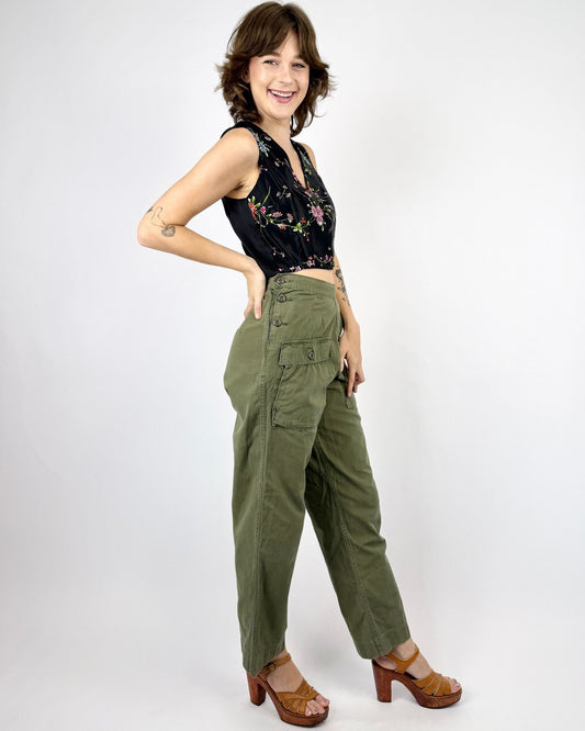 Embroidered and Cropped Fatigue Jacket