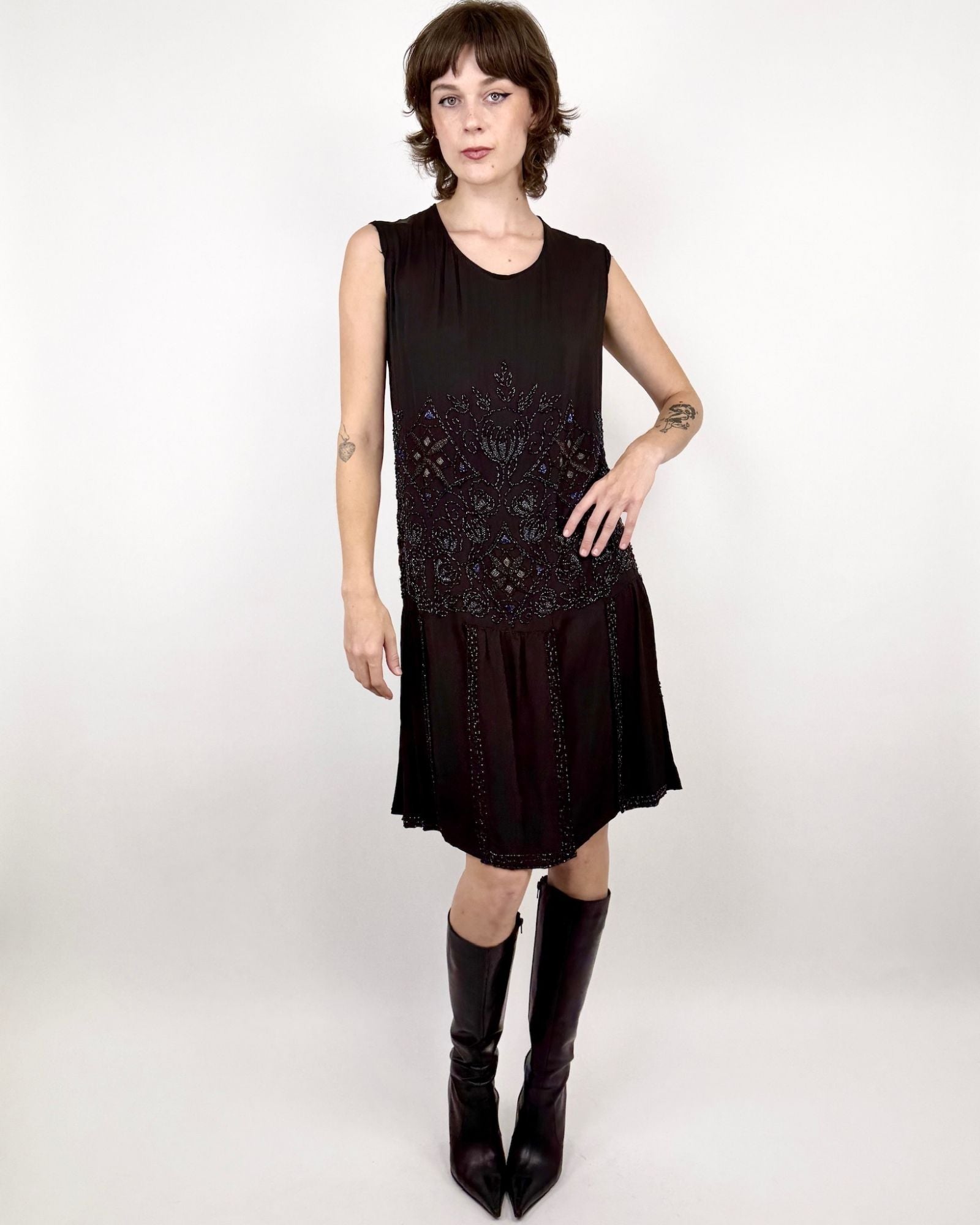 1960s Candy Lane Velvet Beaded Mini Dress
