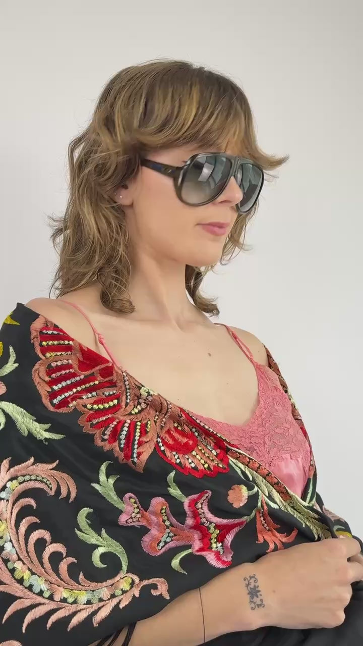 Through The Vines Black Embroidered Robe