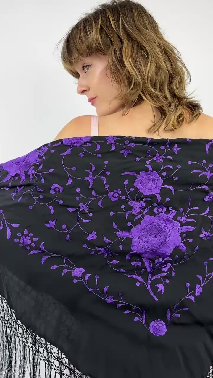 Shady Violets Embroidered Piano Shawl