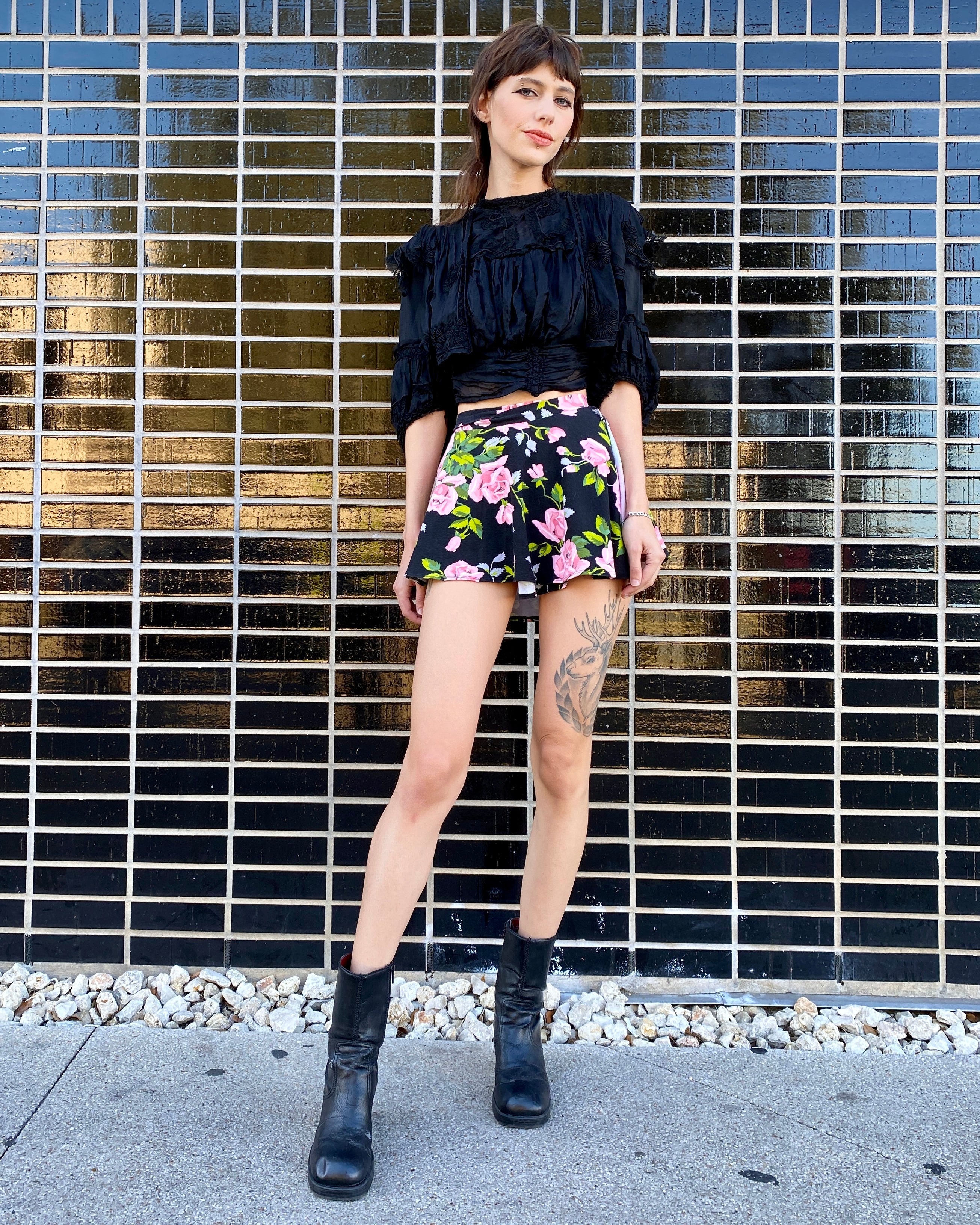 Moschino Helena's Rose Black Pleated Top