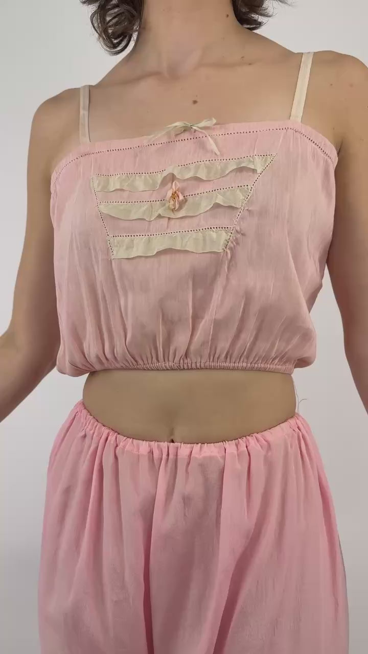 Powder pink silk bloomers with dainty ruffles at the bottom and custard yellow bow ribbons woven in.