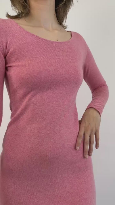Soft pink cashmere midi dress with a scoop neckline. Effortlessly elegant and beautifully understated, this refined staple is the perfect base for endless styling.