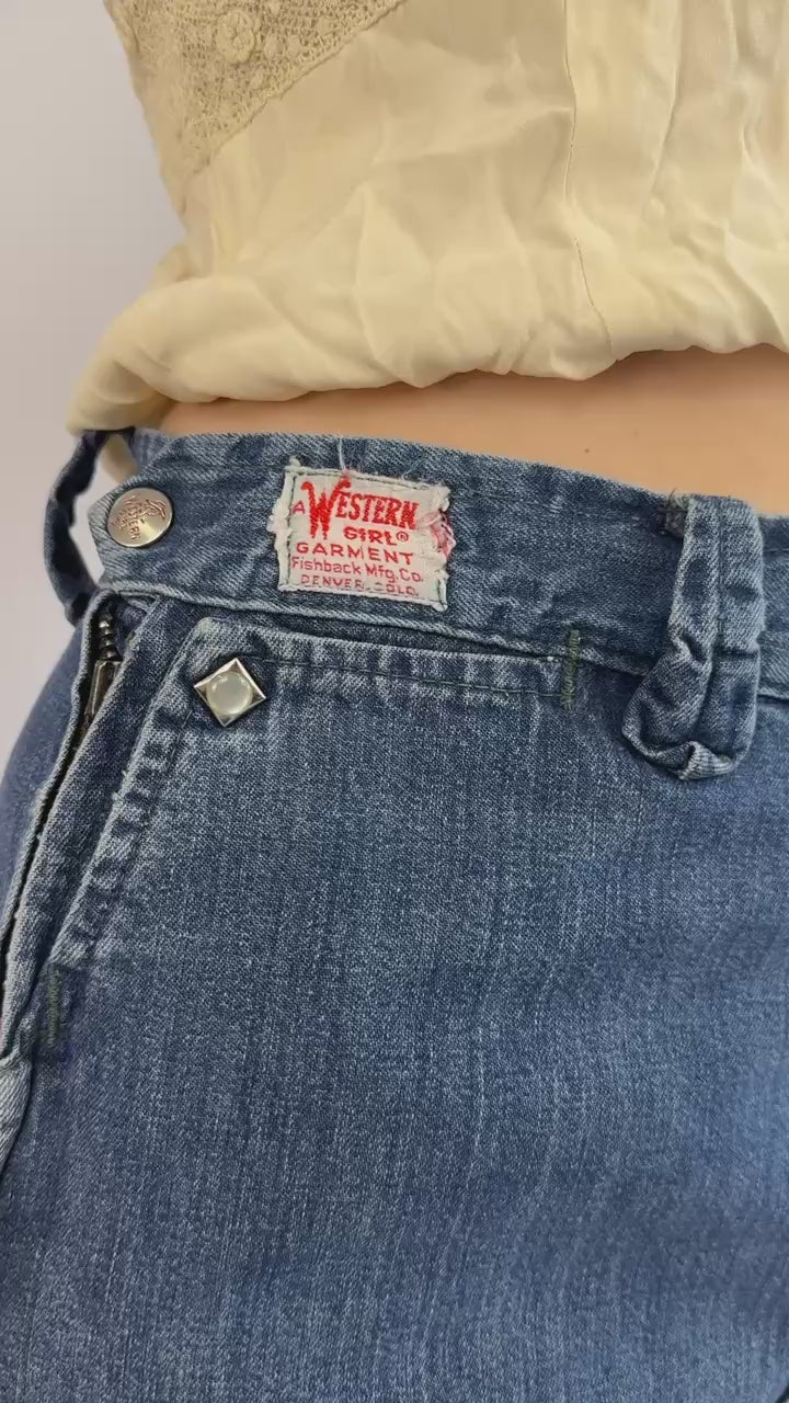 The ultimate addition to any denim collection, these 1950s indigo pearl snap jeans can be styled in true Americana fashion or with a contemporary twist, they are truly timeless!